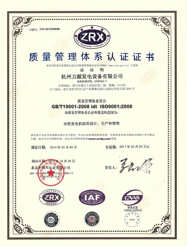 公司与国际著名的跨国公司阿尔斯通、GE、福伊特有多年的合作经历,在合作过程中吸取了上述公司先进的管理理念和方法,并结合公司自身的特点对质量管理体系进行了持续的改进与更新。