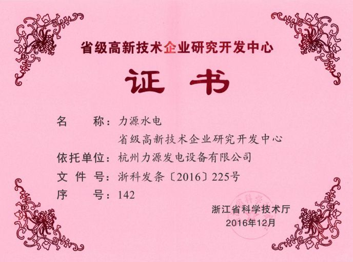 省级高新技术企业研究开发中心证书