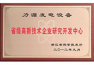 力源发电设备省级高新技术企业研究开发中心